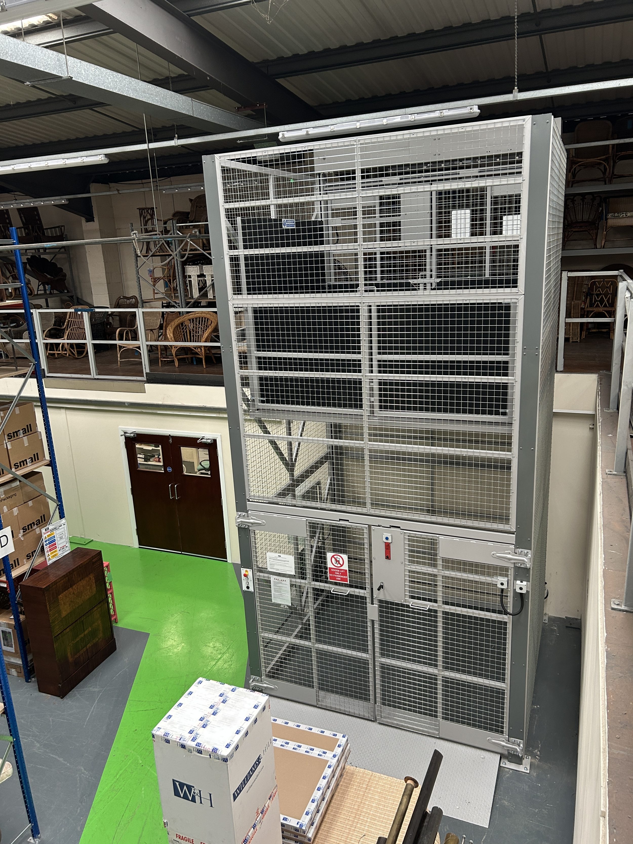 two mezzanine goods lifts