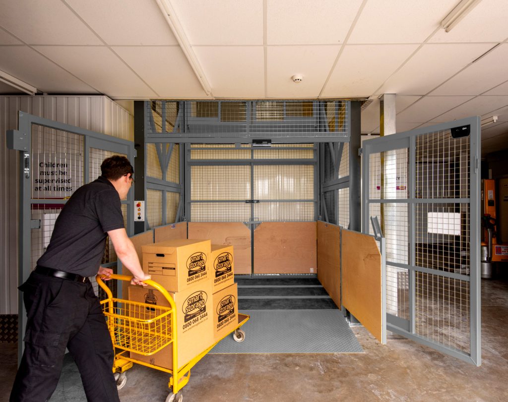 Man loading a goods lifts